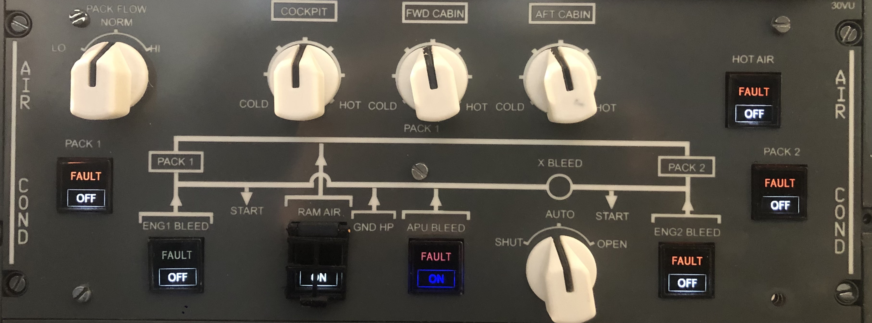 - Sélecteurs de bleed air : ENG 1/2, APU, OFF